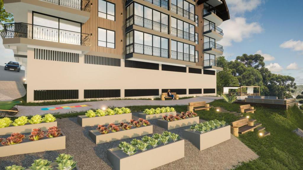 Infraestrutura: Deck externo com fogo de chão, Deck Panorâmico, Elevador, Espaço Fire Fit (Espaço para fogueira ao ar livre), Gás Central, Hall de entrada, Horta comunitária, Medidores individuais de água, luz e gás, Pátio | Jardim, Pomar, Portão Eletrônico, Porteiro Eletrônico, Sala de Fitness Equipada