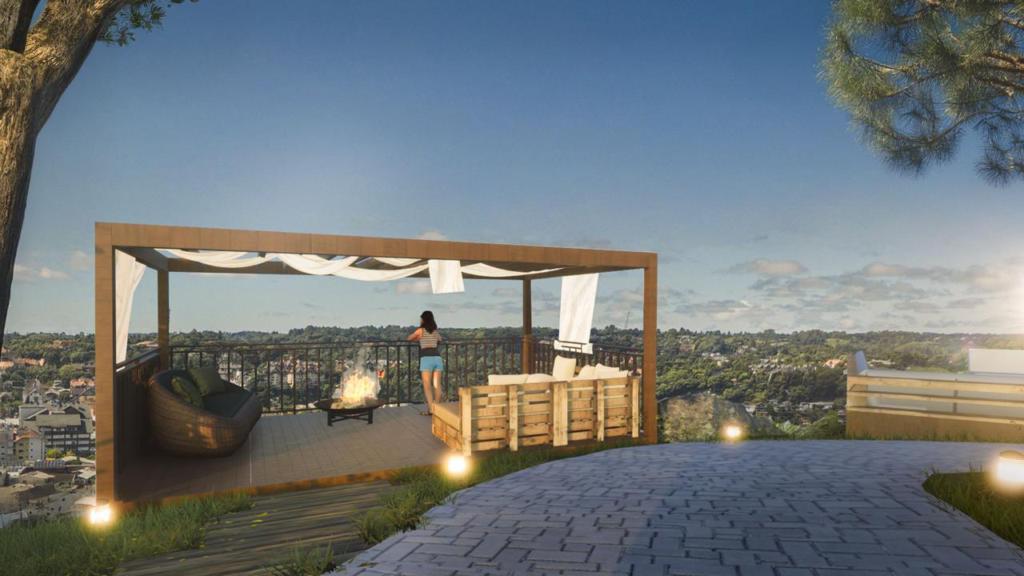 Infraestrutura: Deck externo com fogo de chão, Deck Panorâmico, Elevador, Espaço Fire Fit (Espaço para fogueira ao ar livre), Gás Central, Hall de entrada, Horta comunitária, Medidores individuais de água, luz e gás, Pátio | Jardim, Pomar, Portão Eletrônico, Porteiro Eletrônico, Sala de Fitness Equipada