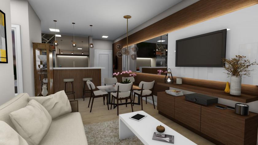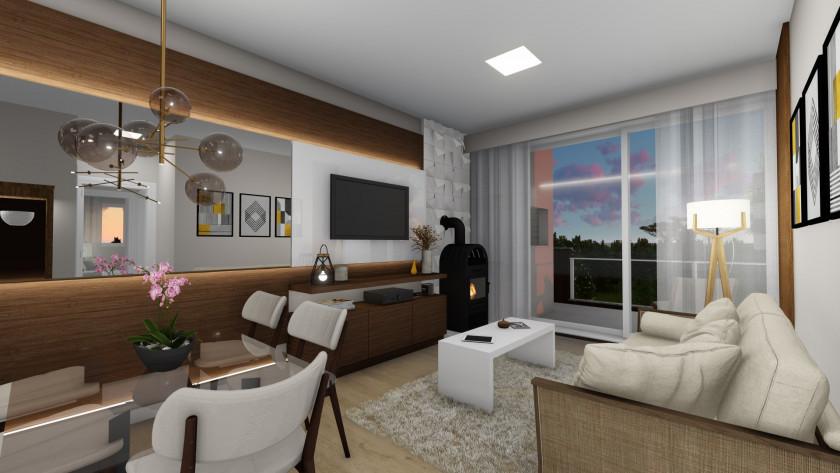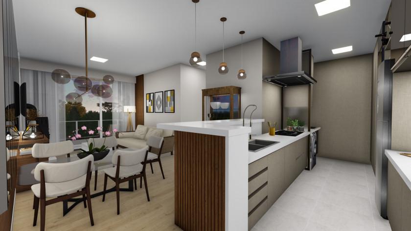 Características: 03 Dormitórios (01 suite), Área de Serviço, Cozinha integrada, Espera para calefação, Espera para lareira, Espera para split, Lavabo, Sacada com churrasqueira, Sala de Estar, Sala de Jantar