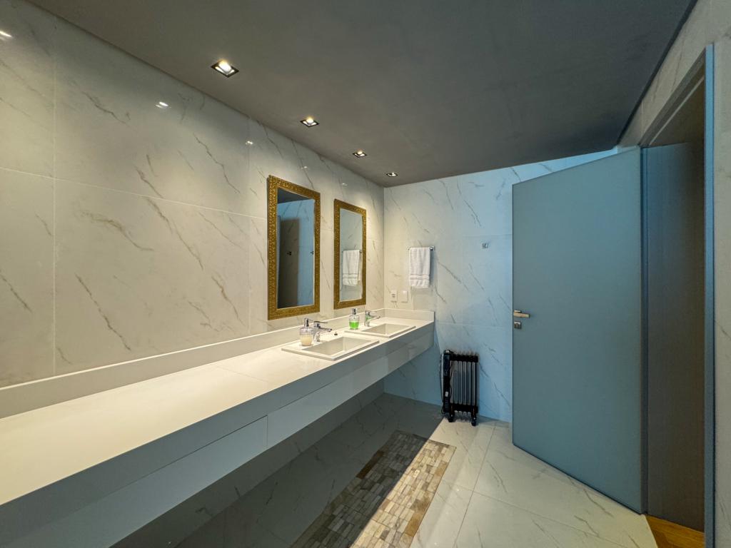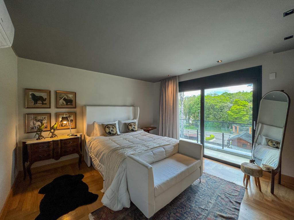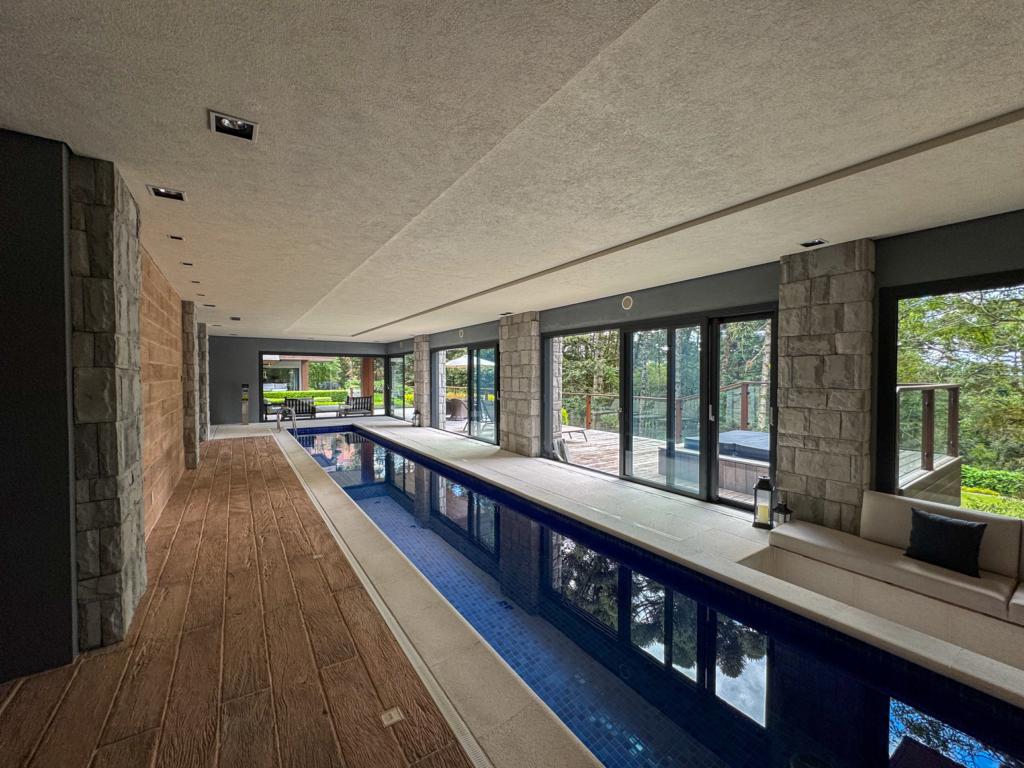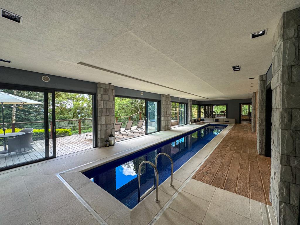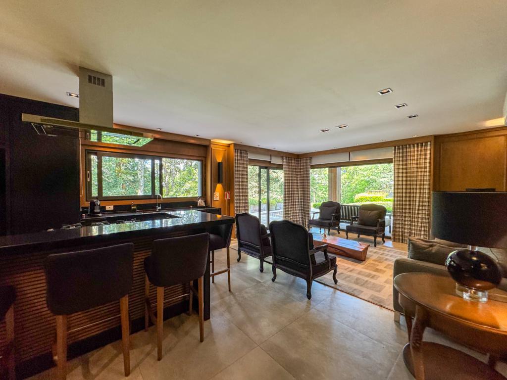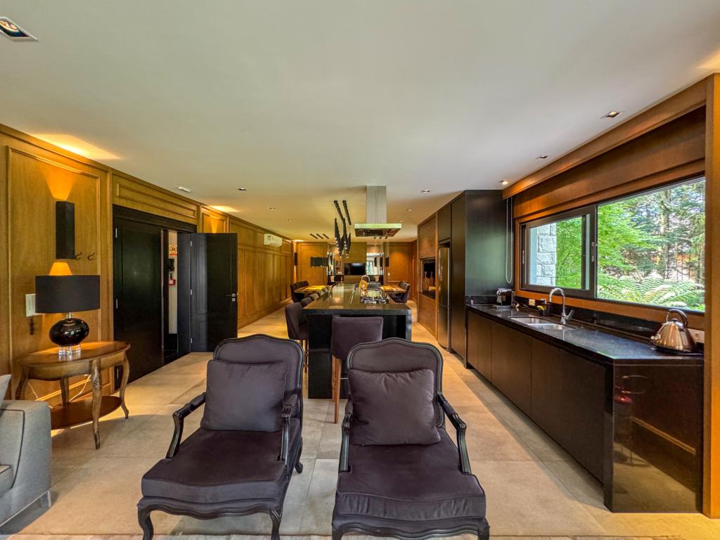 Características: 04 Suítes (suíte master c/ closet e hidromassagem), Acabamento de alto padrão, Água Quente, Área de Serviço, Banheiro Social, Calefação Instalada, Cozinha integrada, Espaço Gourmet com churrasqueira, Garagem para 03 carros, Isolamento térmico e acústico, Lavabo, Mobiliado, Sacada, Sala de Estar com lareira, Sala de Jantar, Split instalado em todas as peças, Vista para o Vale do Quilombo