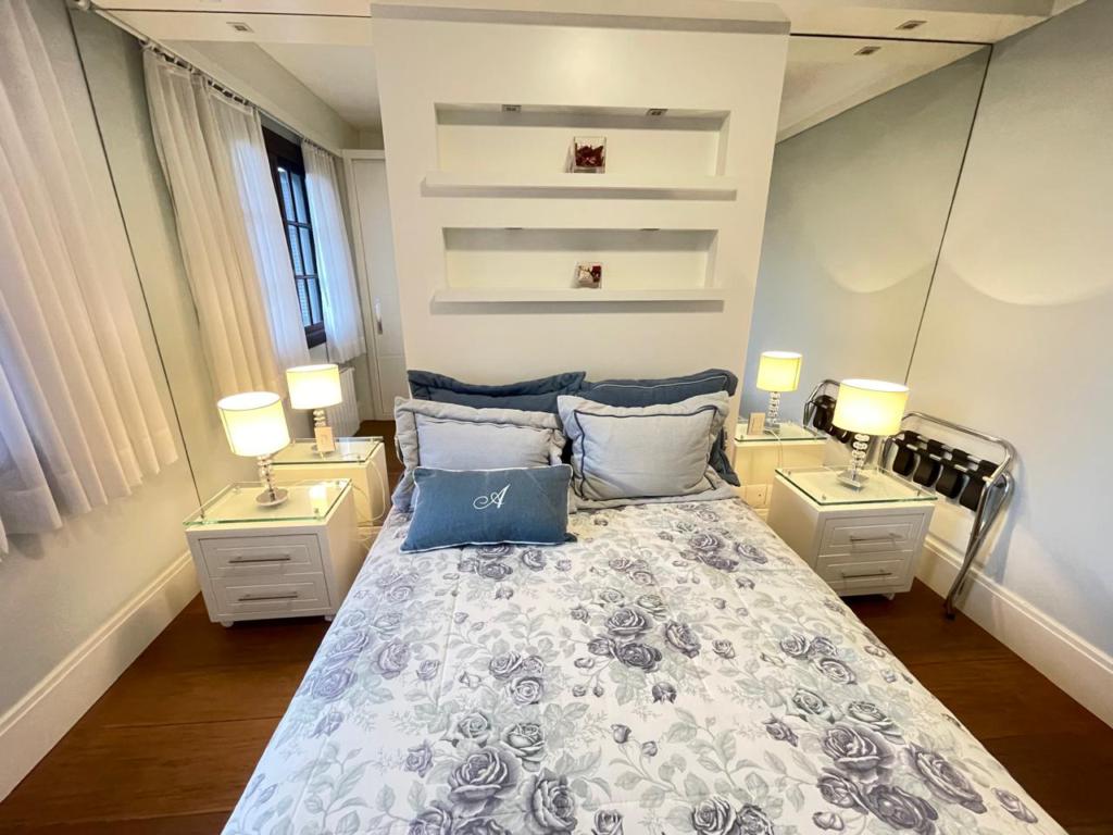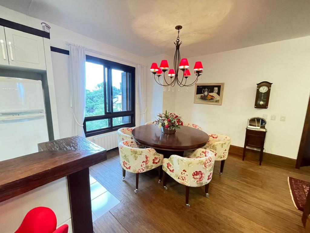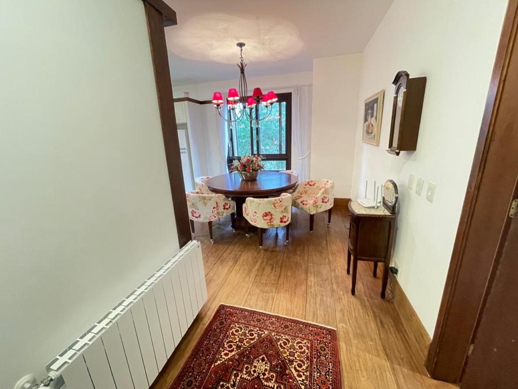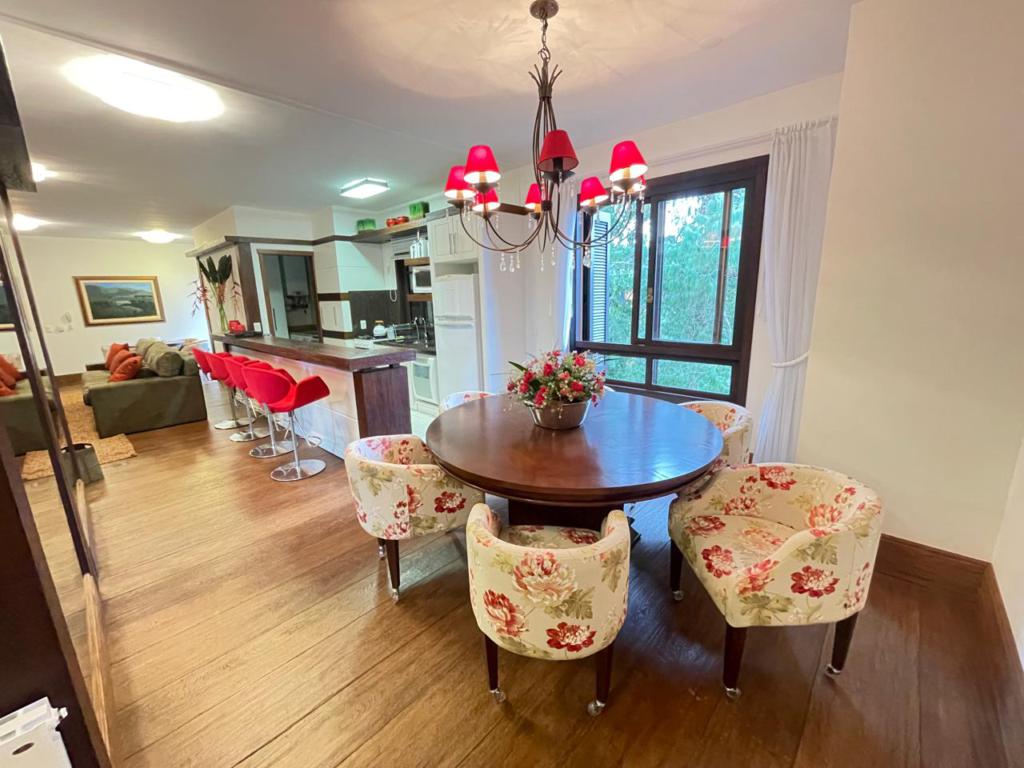 Características: 05 Dormitórios (02 suítes), Água Quente, Área de Serviço, Banheiro Social, Calefação Instalada, Cozinha integrada com churrasqueira, Garagem para 04 carros, Mobiliado, Sacada, Sala de Estar em 02 ambientes com lareira, Sala de Jantar, Split, Suíte Master com banheira de Hidromassagem