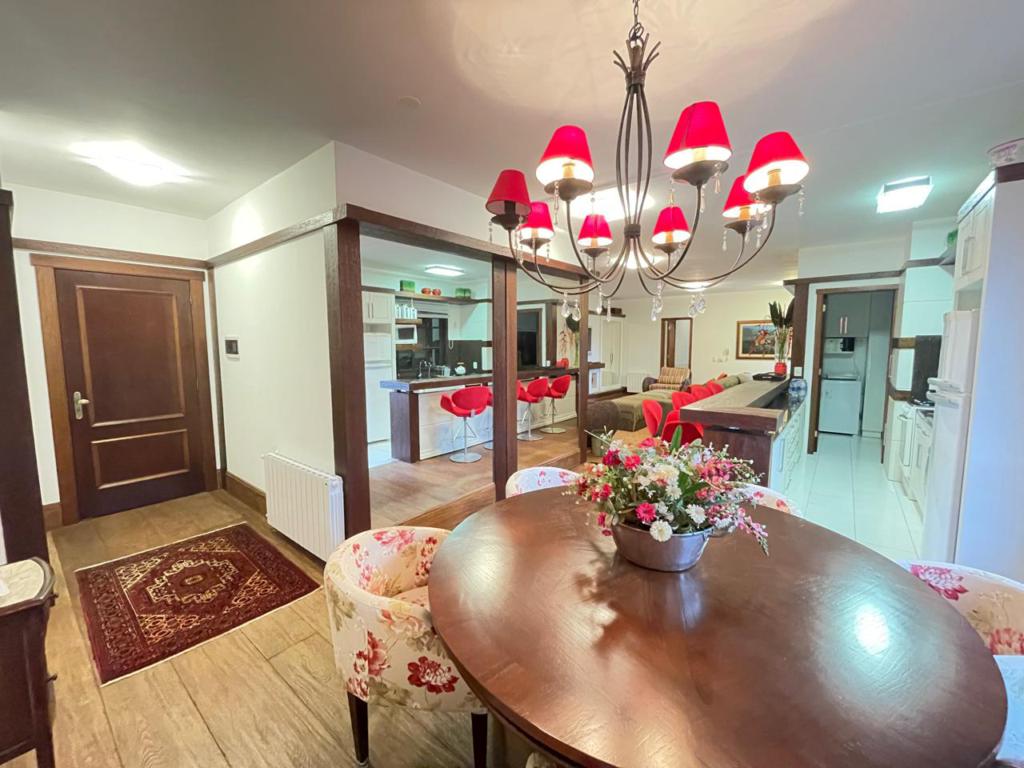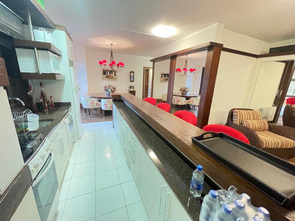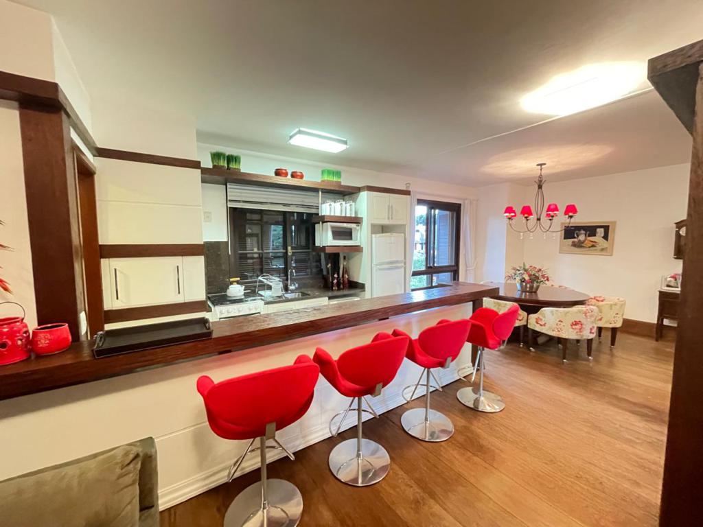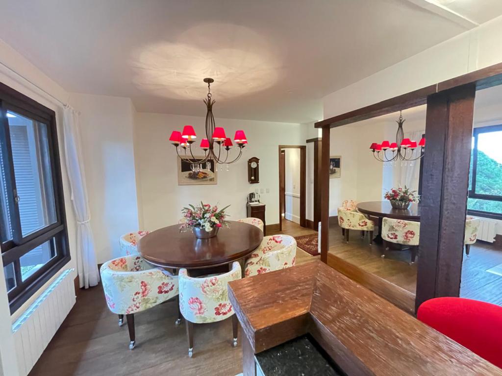 Características: 05 Dormitórios (02 suítes), Água Quente, Área de Serviço, Banheiro Social, Calefação Instalada, Cozinha integrada com churrasqueira, Garagem para 04 carros, Mobiliado, Sacada, Sala de Estar em 02 ambientes com lareira, Sala de Jantar, Split, Suíte Master com banheira de Hidromassagem