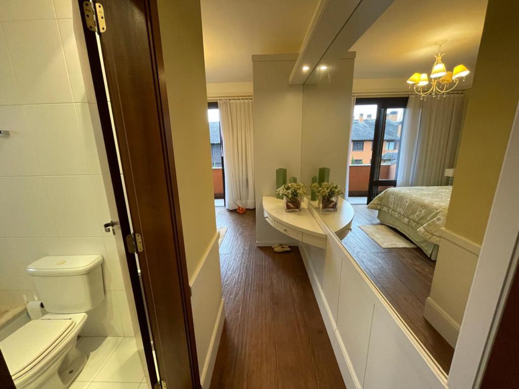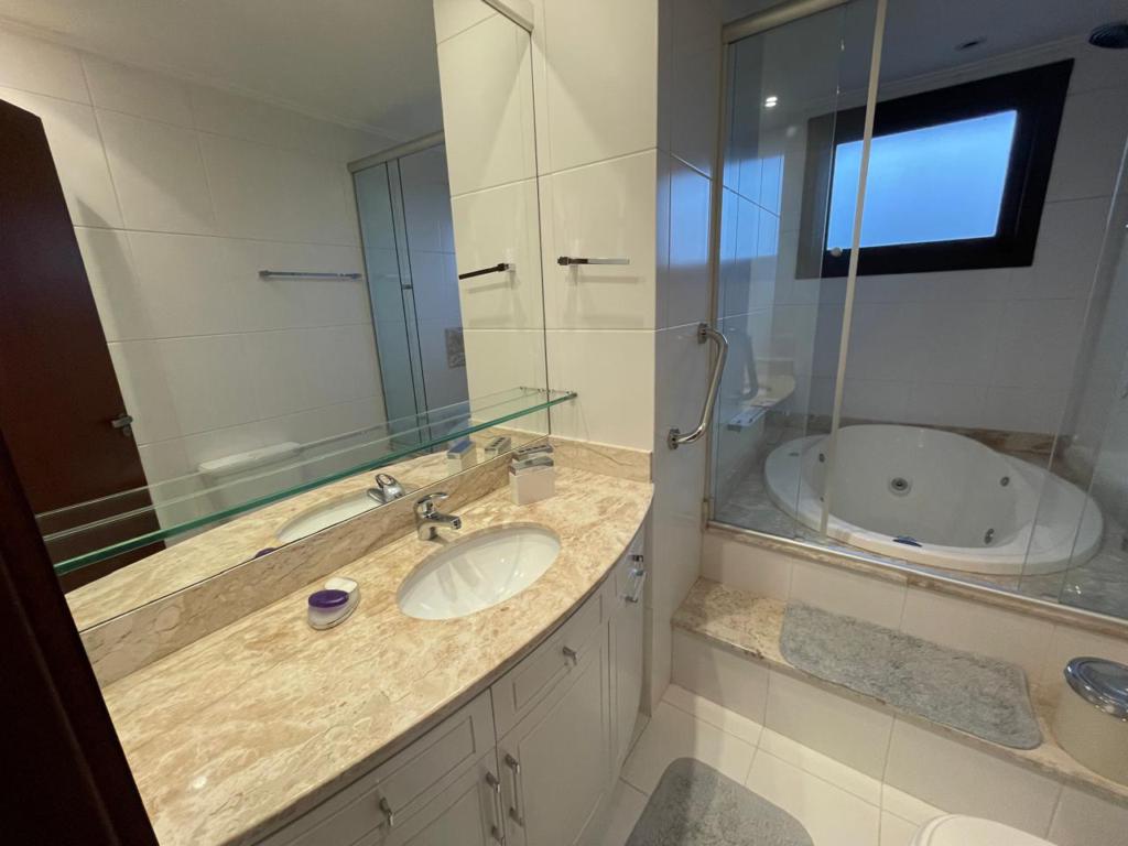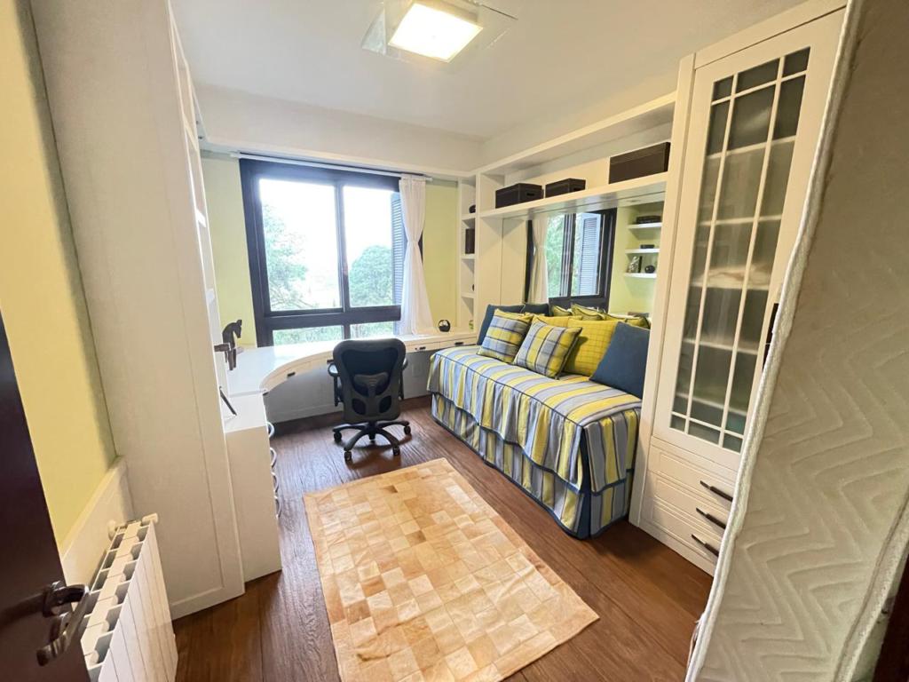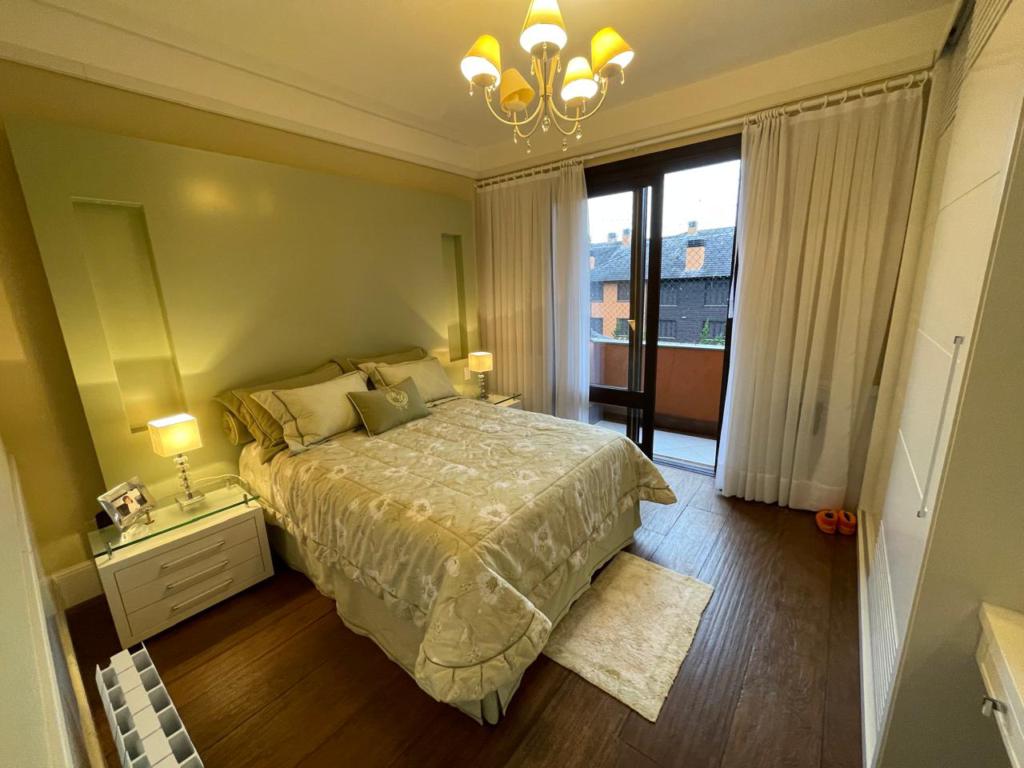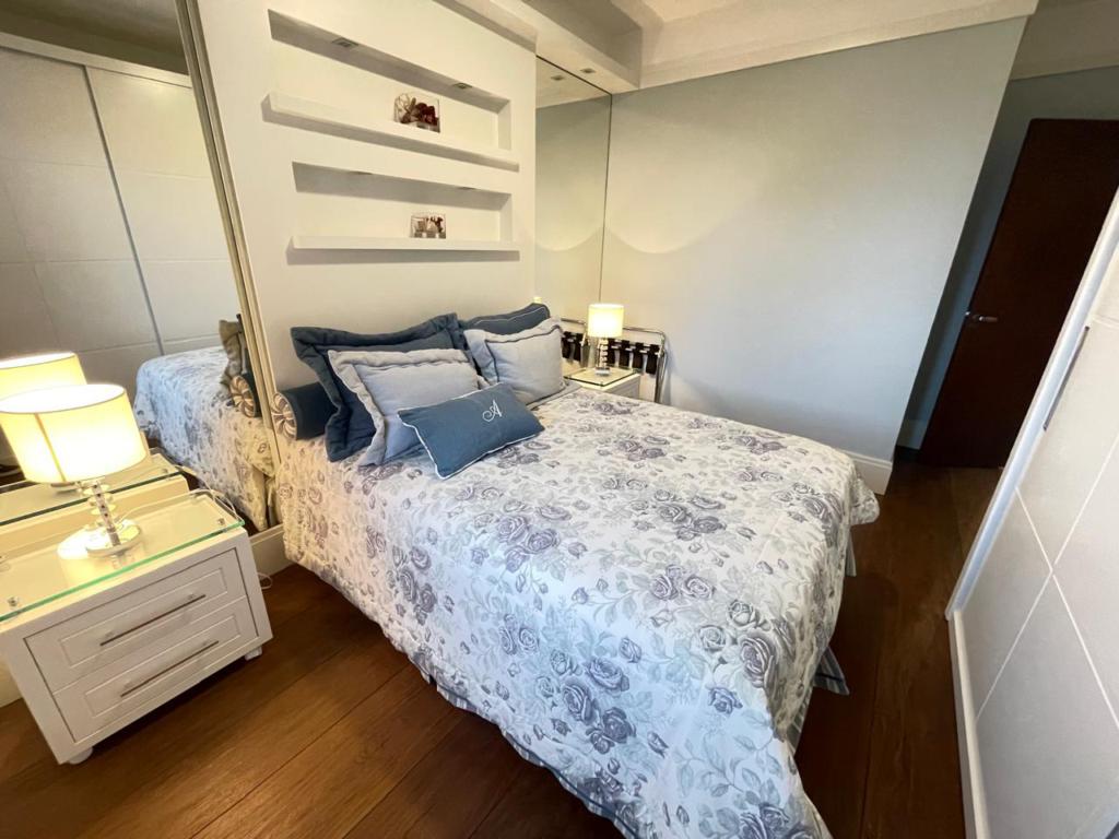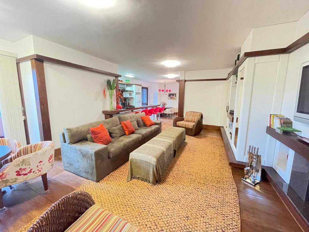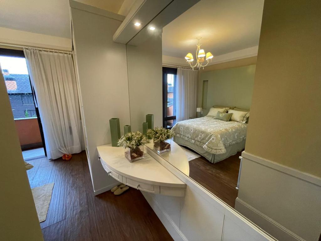 Excelente apartamento com 05 dormitórios, (02 suítes com banheira de hidromassagem), decorado e mobiliado, lavabo, living amplo com lareira, cozinha integrada com churrasqueira, sala de jantar e estar com lareira e sacada, 4 vagas de estacionamento cobertas. Localizado em condomínio fechado com completa infraestrutura de lazer e segurança.