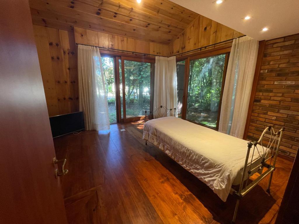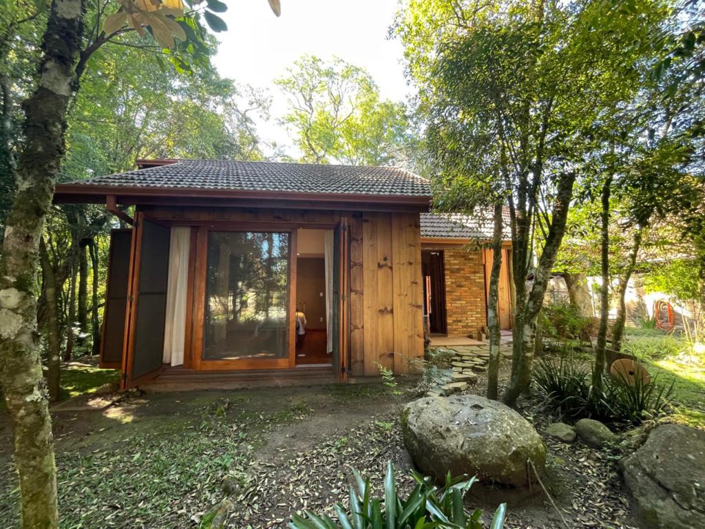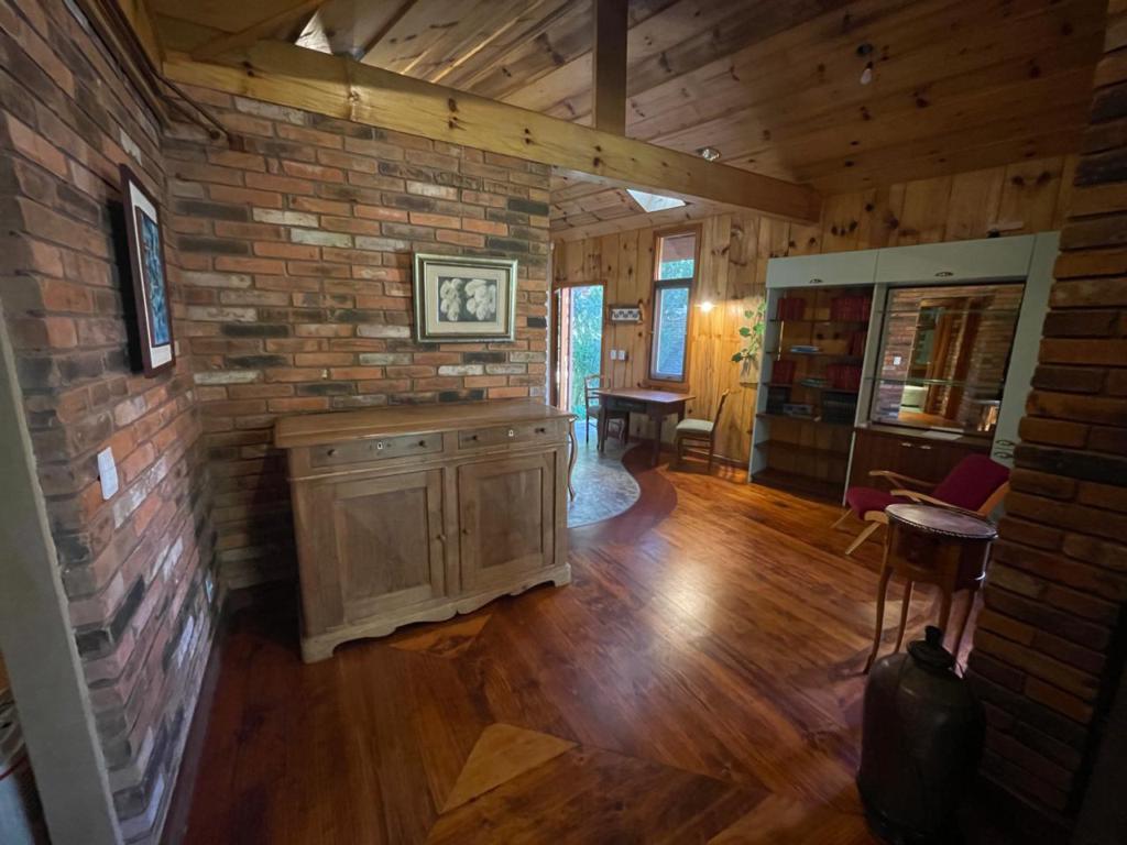 Janelas em madeira com vidros duplos e tela mosquiteiro, paredes mistas com madeira de pinheiro tratada e alvenaria, amplo banheiro com piso aquecido e banheira de imerção, aproveitamento da água da chuva para jardim e banheiro, assoalho com fino trabalho em marchetaria, pátio cercado, terreno medindo 517,50 m². Localização privilegiáda em bairro residencial, imediações do Lago Negro, no nobre bairro Planalto.