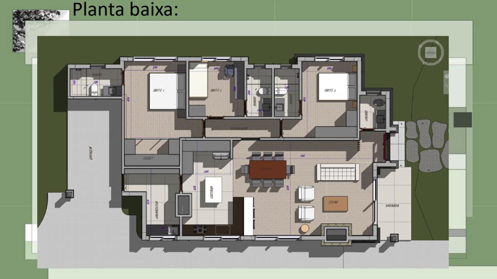 CaracterÃsticas: 03 SuÃtes (01 com closet), Cozinha integrada com churrasqueira, Espera para água quente, Espera para calefação, Espera para piso aquecido nos banheiros, Espera para split, Esquadrias externas em PVC com vidro duplo, Garagem, Lavabo, Lavanderia, Sala de Estar com lareira, Sala de Jantar, Varanda