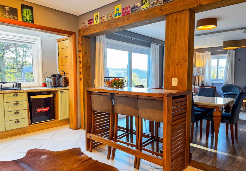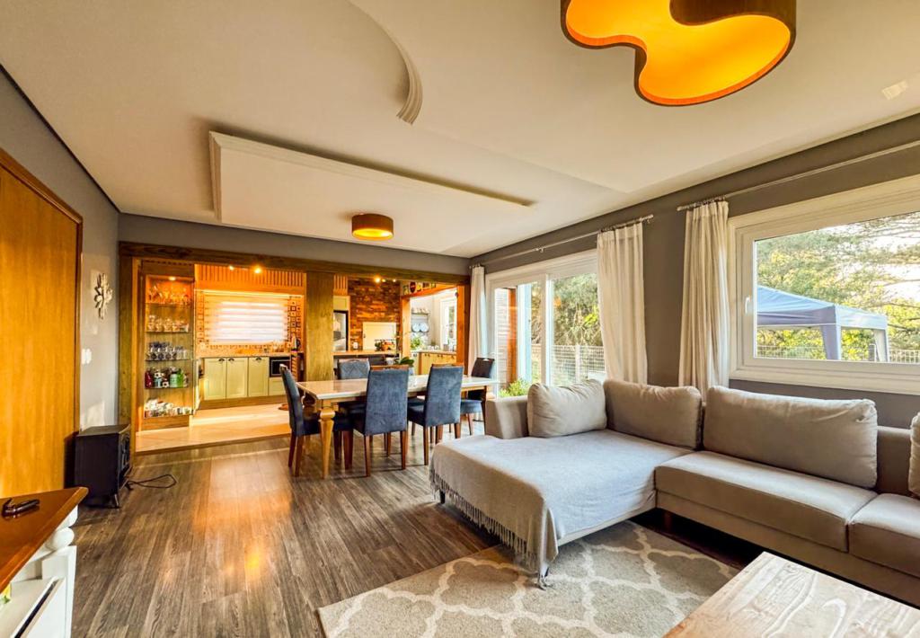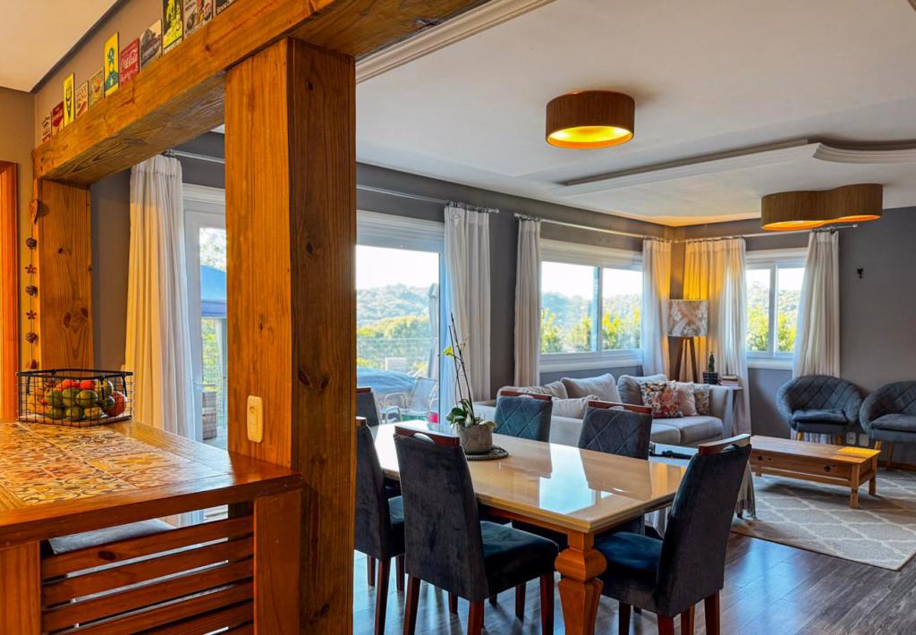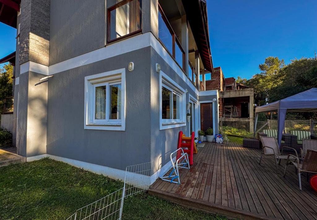 Casa com 03 dormitórios (02 suítes), móveis-fixos, todos com os quartos com sacada, living em 2 ambientes com lareira, home office, cozinha com churrasqueira, lavabo, banho social. Localizada no loteamento Vivendas do Arvoredo, aproimadamente 4 km do Centro de Gramado.