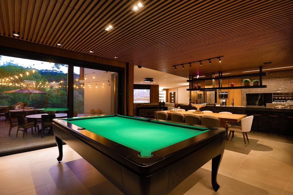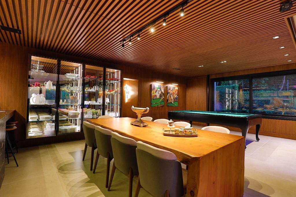 Características: 03 Suítes, Adega, Água Quente, Calefação Instalada, Cozinha integrada com churrasqueira, Deck em Madeira, Espaço Gourmet com churrasqueira, Esquadrias externas em PVC com vidro duplo, Garagem para 04 carros, Hall, Lavabo, Lavanderia, Mobiliado, Piso aquecido, Sala de Cinema, Sala de Estar em 02 ambientes com lareira, Sala de Jantar, Sala de Jogos, Split instalado em todas as peças, Varanda