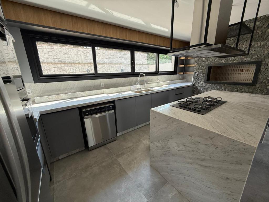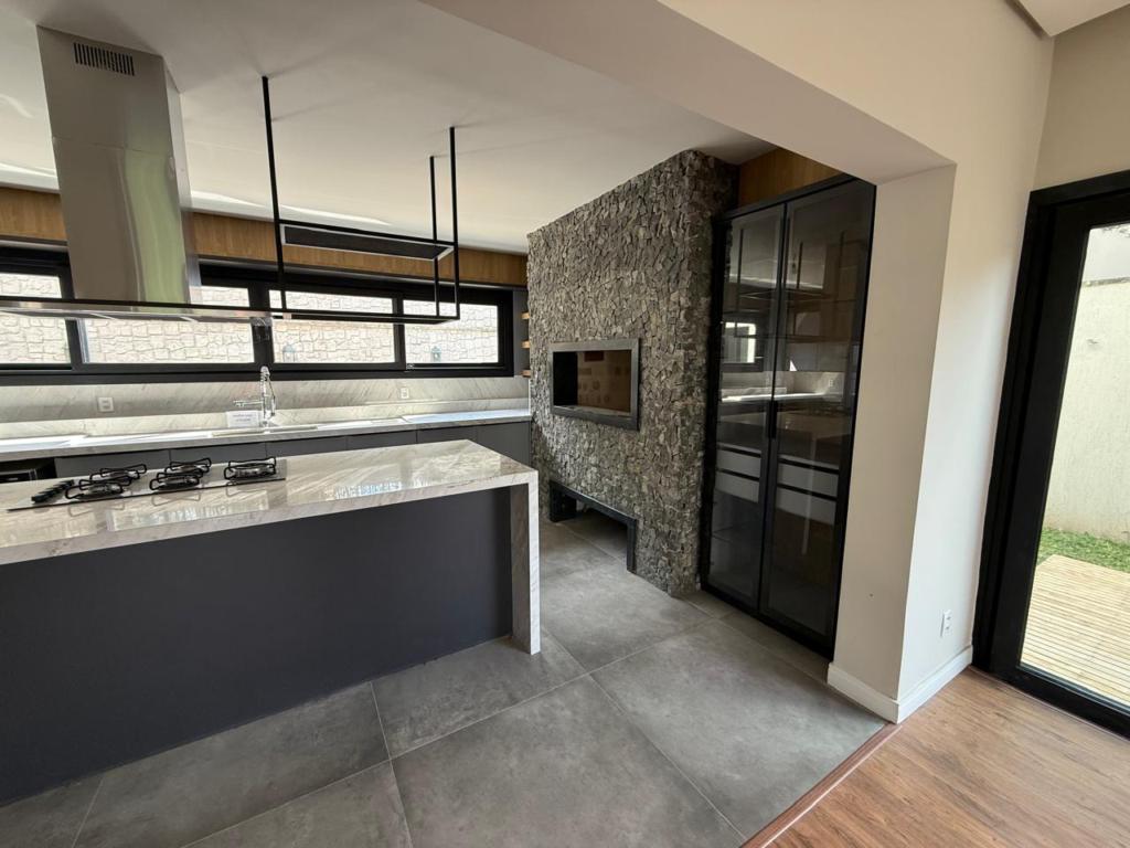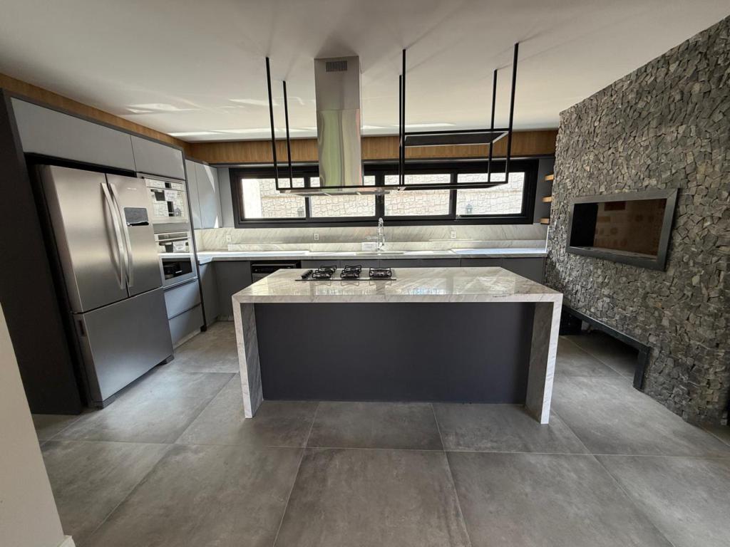 BELÍSSIMA RESIDÊNCIA em Condomínio Fechado com completa infraestrutura de segurança e lazer. São 04 suítes (suíte master com closet), e ampla área social e de convívio, cozinha integrada com churrasqueira, calefação e split instalados, sala de jantar e estar lareira e sacada. Garagem para 3 veículos. Terreno com 800,00 m².