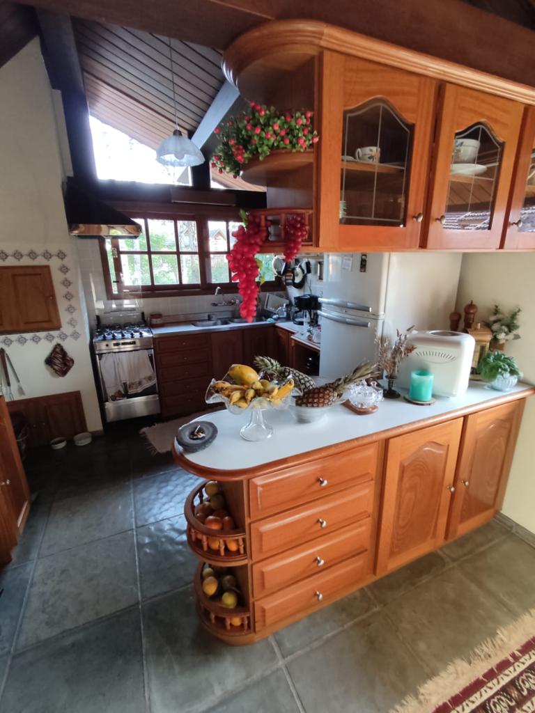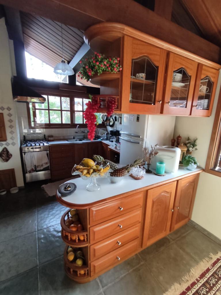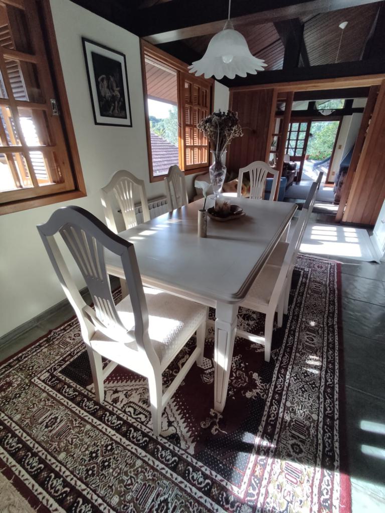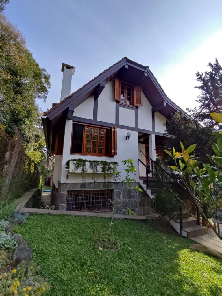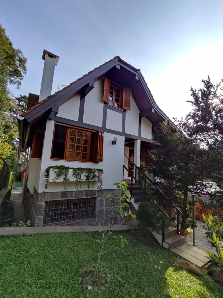 Características: 05 Dormitórios (01 suíte), Água Quente, Aquecimento solar, Banheiro Social, Calefação Instalada, Cozinha integrada com churrasqueira, Deck em Madeira, Depósito, Escritório, Garagem para 02 carros, Lavanderia, Mobiliado, Patio Cercado, Sacada, Sala de Estar com lareira, Sala de Jantar
