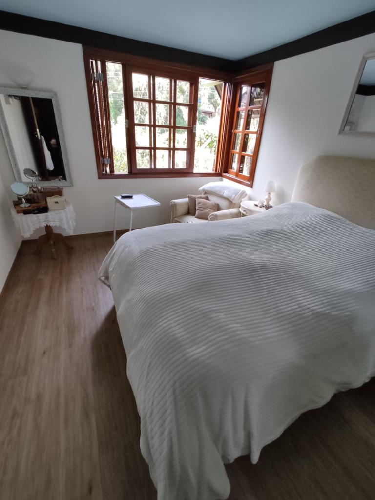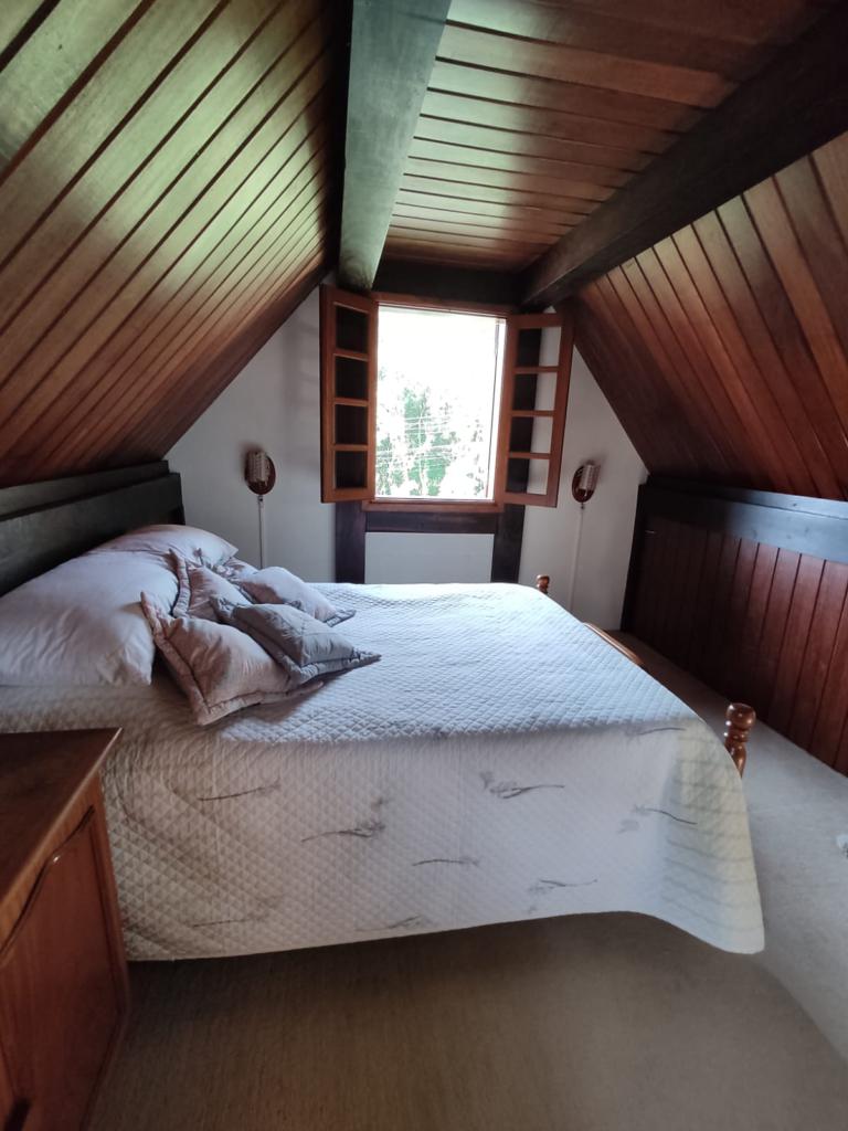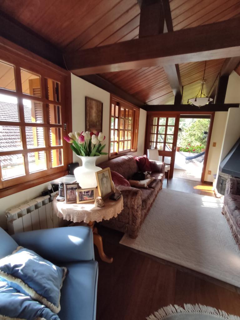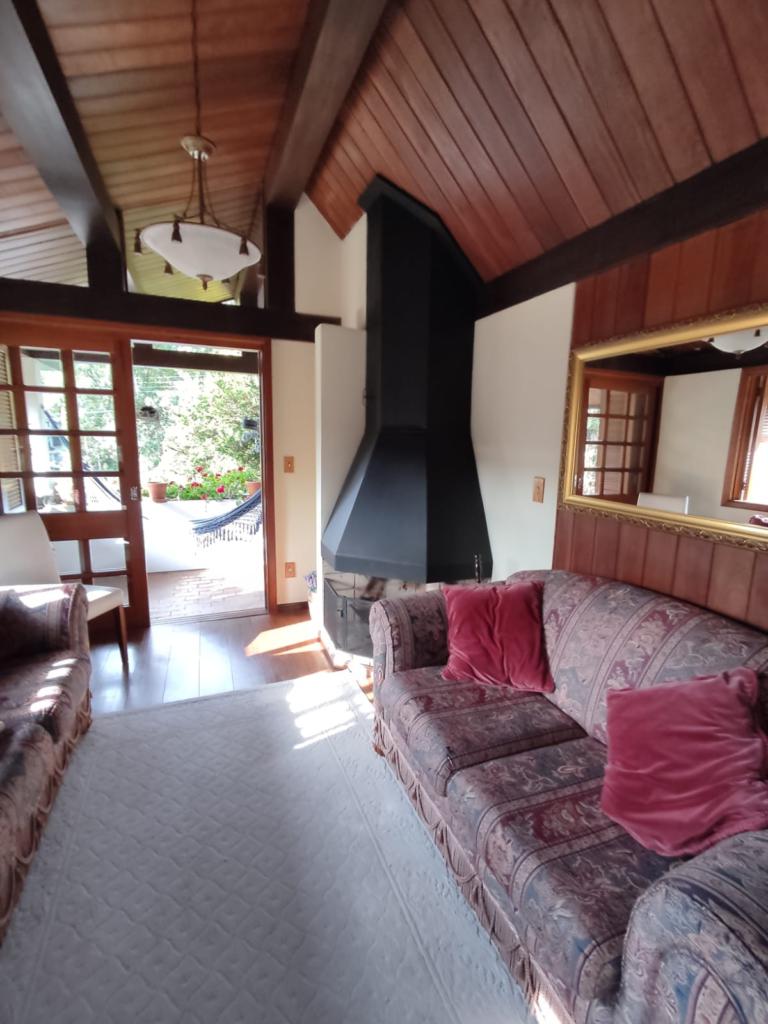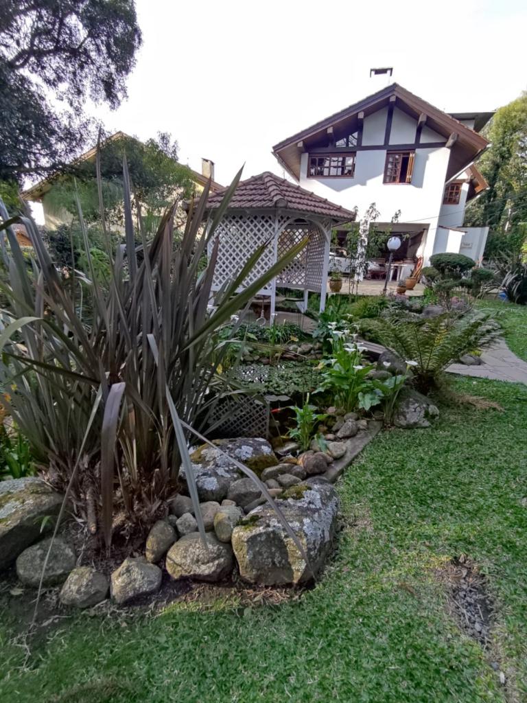 Características: 05 Dormitórios (01 suíte), Água Quente, Aquecimento solar, Banheiro Social, Calefação Instalada, Cozinha integrada com churrasqueira, Deck em Madeira, Depósito, Escritório, Garagem para 02 carros, Lavanderia, Mobiliado, Patio Cercado, Sacada, Sala de Estar com lareira, Sala de Jantar