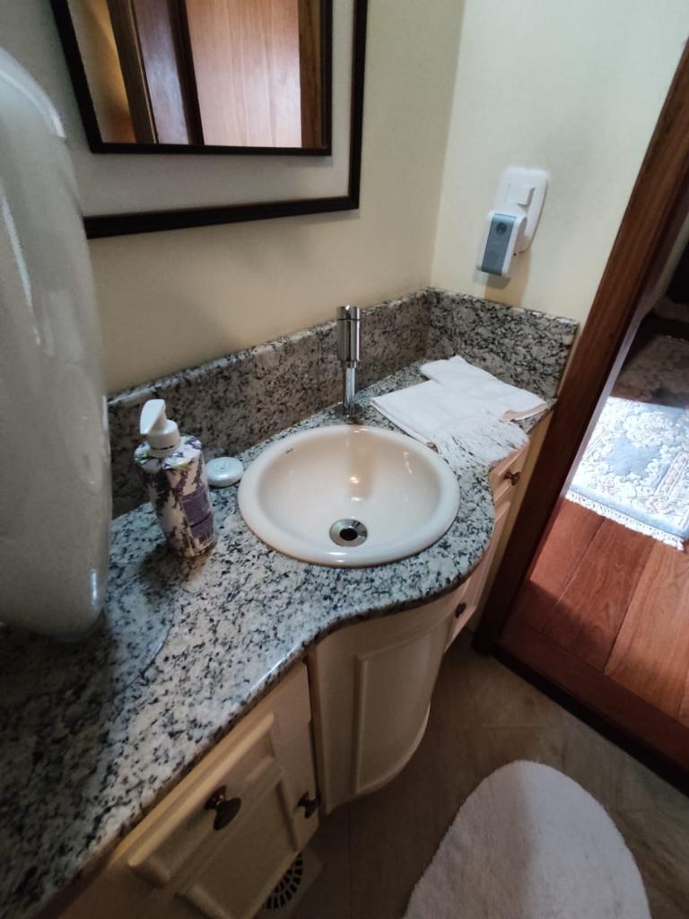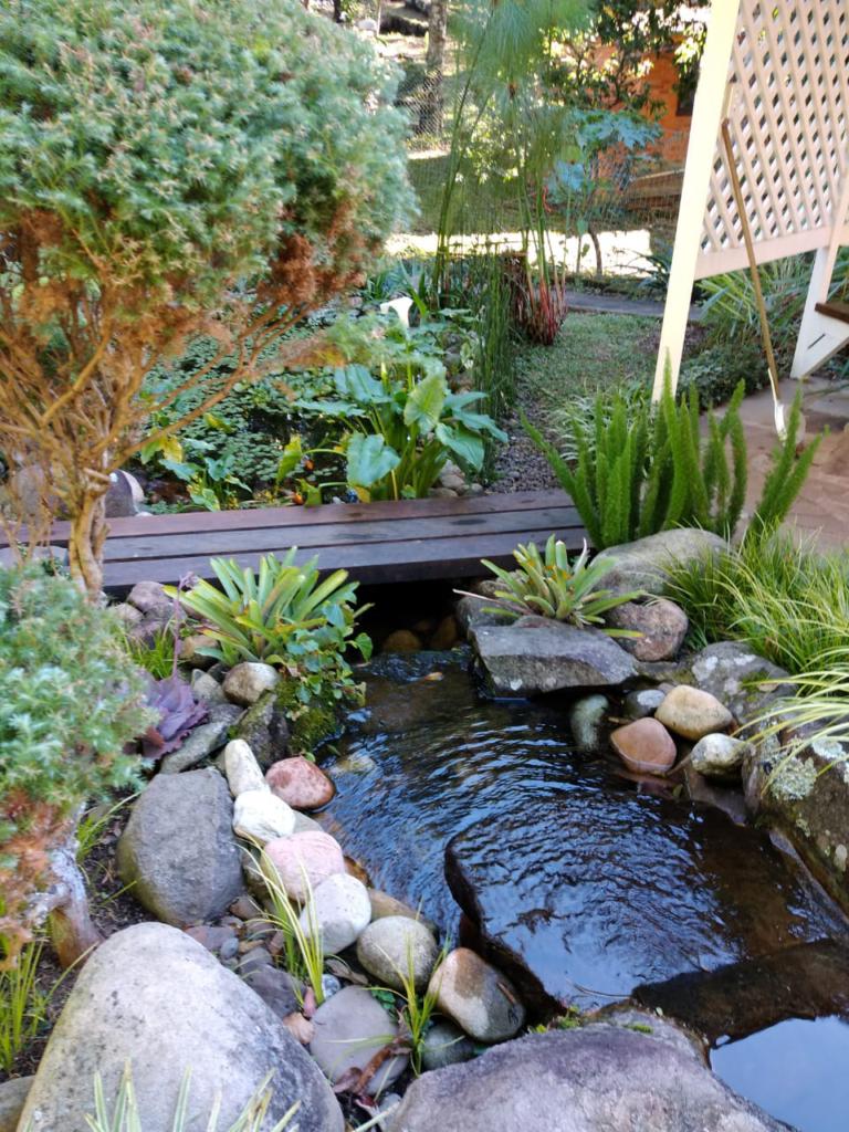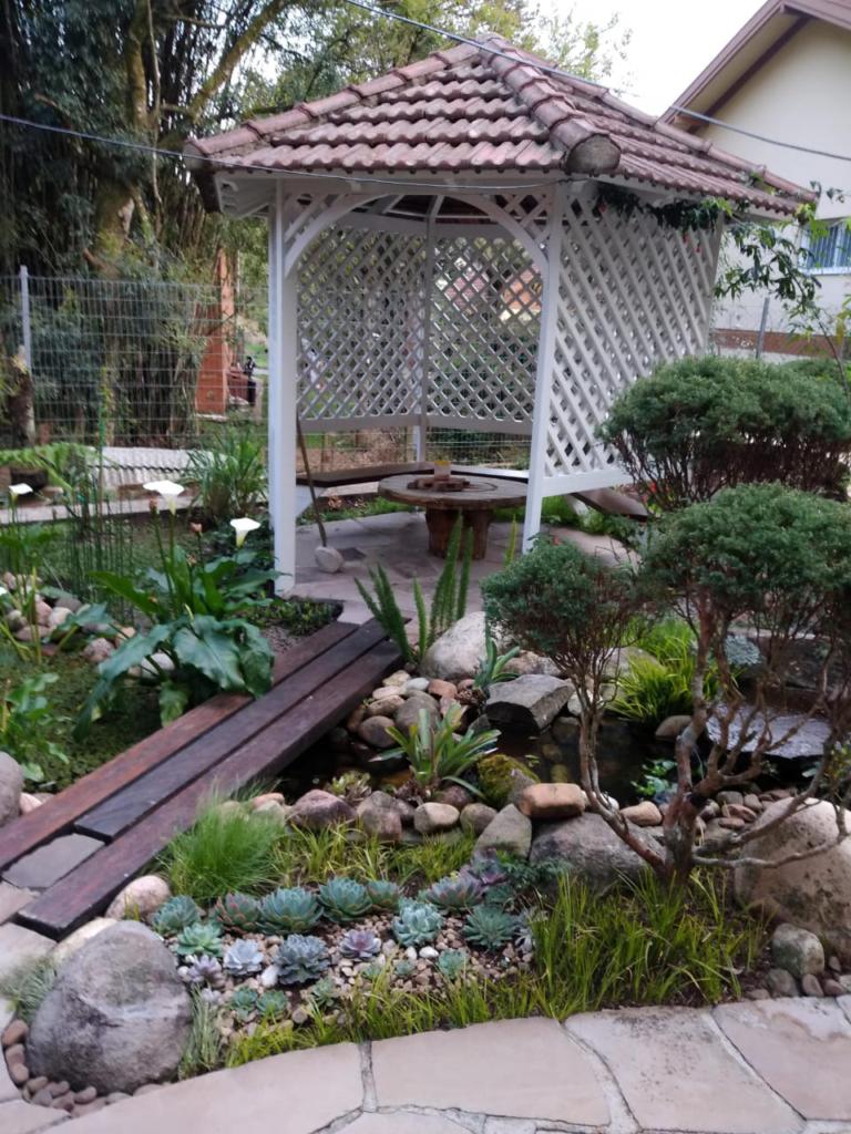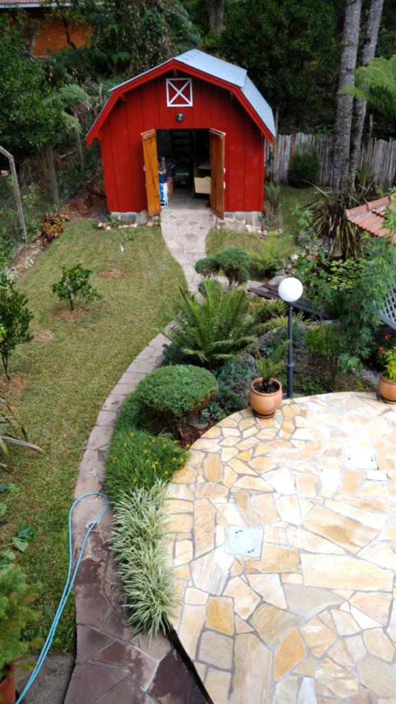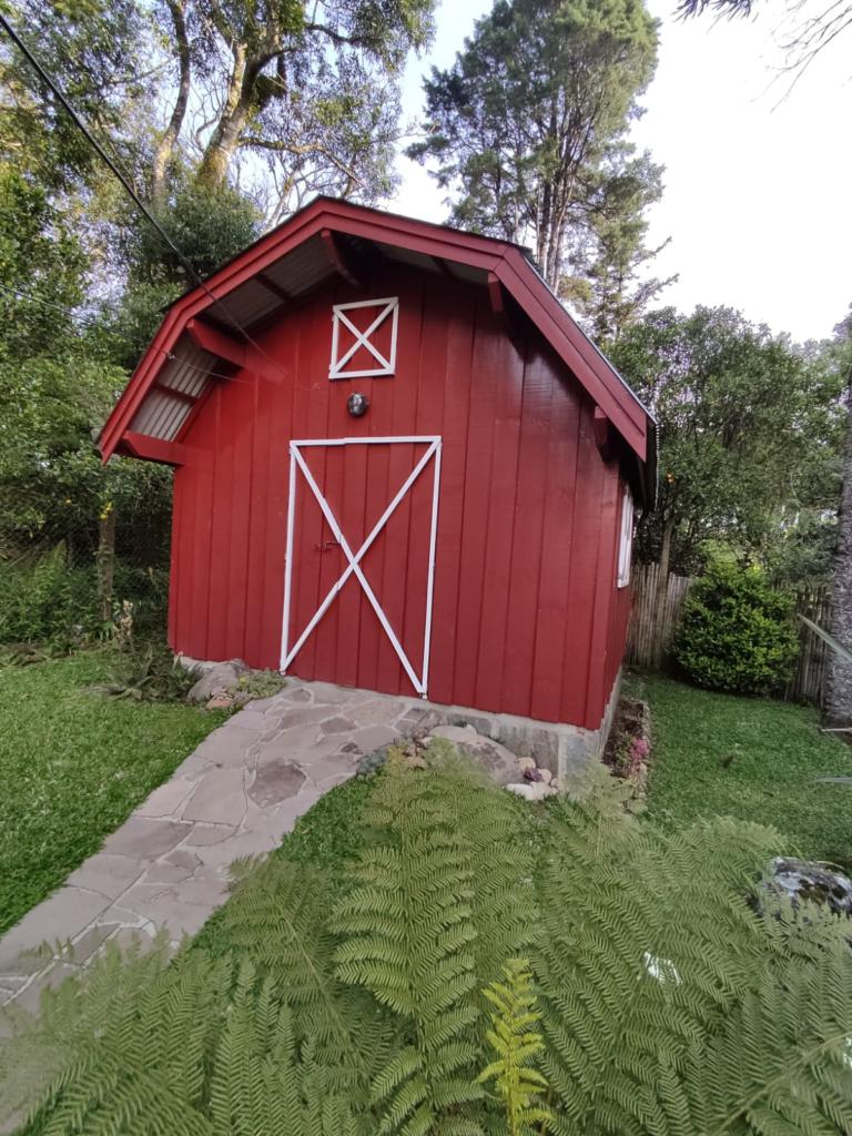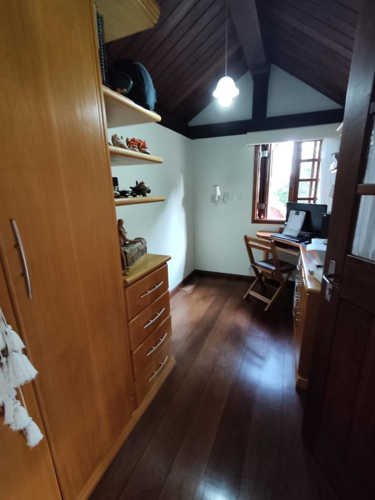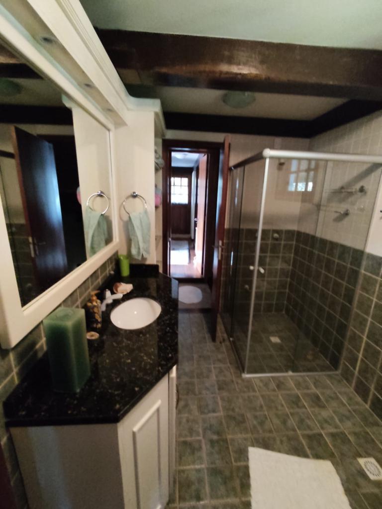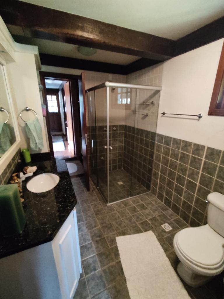 Casa com 5 dormitórios (01 suíte máster com closet e banheira de hidromassagem), 2 dormitórios no 1º piso (garagem), 2º piso; 2 dormitórios, cozinha integrada com churrasqueira, sala de jantar e estar com lareira, mobiliada, 3º piso mais um dormitório. Porão com 4 peças e banheiro social, podendo ser transformado em um apartamento mediante reforma, lavanderia, garagem para 2 carros, galpão nos fundos, lago com água da chuva, água quente com boiler elétrico e calefação a gás. Placas solares e paredes com tijolo duplo e maciço.