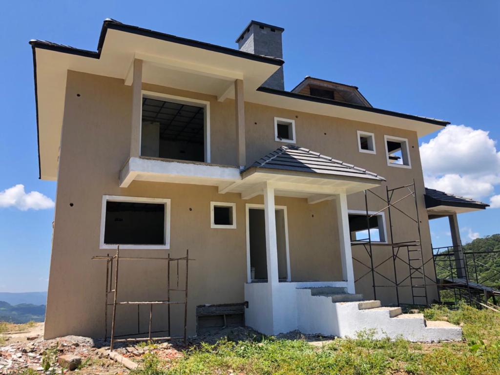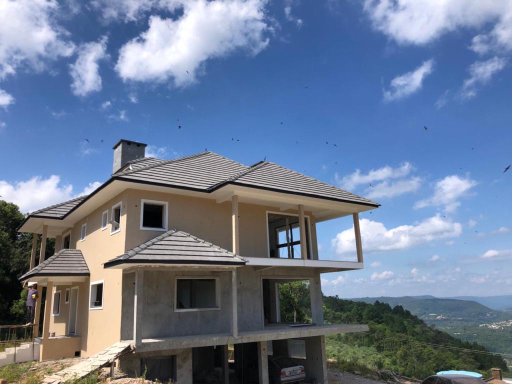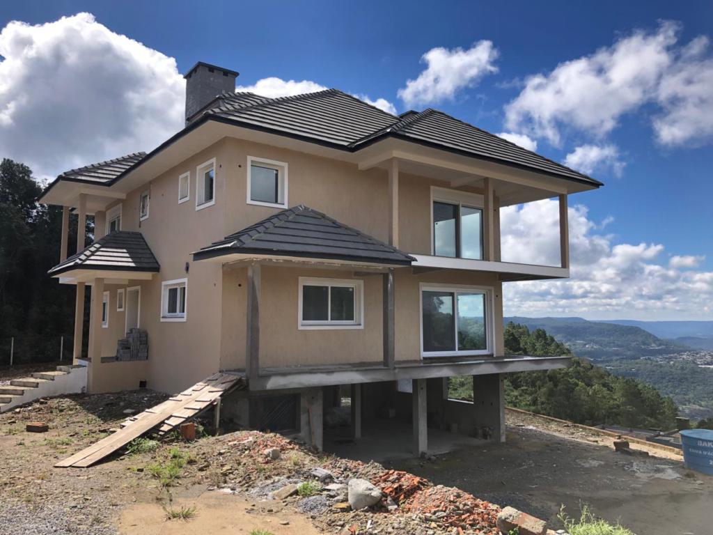Ampla e bela casa com uma fantástica vista para o vale, com 480,00 m² de área construída em um terreno de 10.000,00 m². 5 suítes todas com closet e a master com banheira de hidromassagem. Garagem coberta com portão automático para 2 carros, salão grande para jogos, sauna a lenha, forno de pizza a lenha, churrasqueira, lareira canadense volcano, área de serviço, 2 lavabos, oficina, sala de reunião. Aquecimento com placa solar boiler.