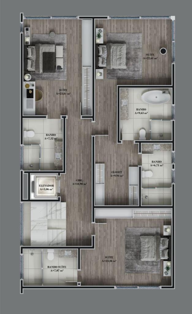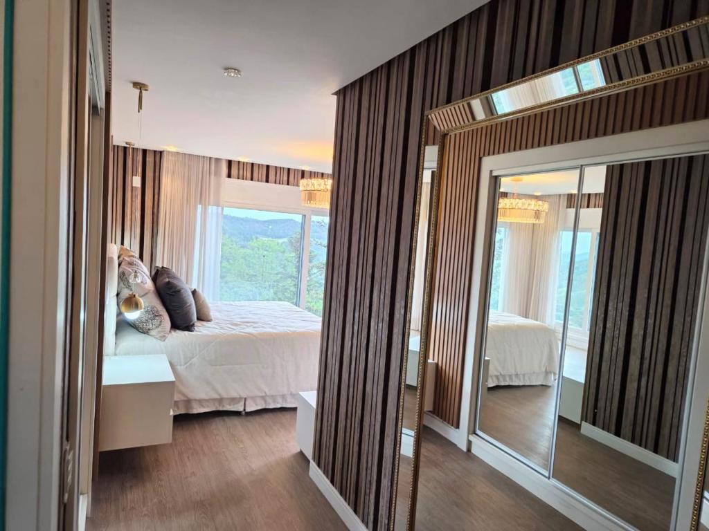 Características: 05 Suítes, Cozinha integrada com churrasqueira, Depósito, Despensa, Elevador, Espera para água quente, Espera para automação residencial, Espera para calefação, Espera para split, Garagem para 02 carros, Hall, Lavabo, Lavanderia, Sala de Estar com lareira, Sala de Jantar, Vista Panorâmica