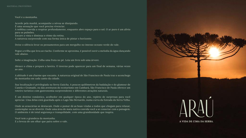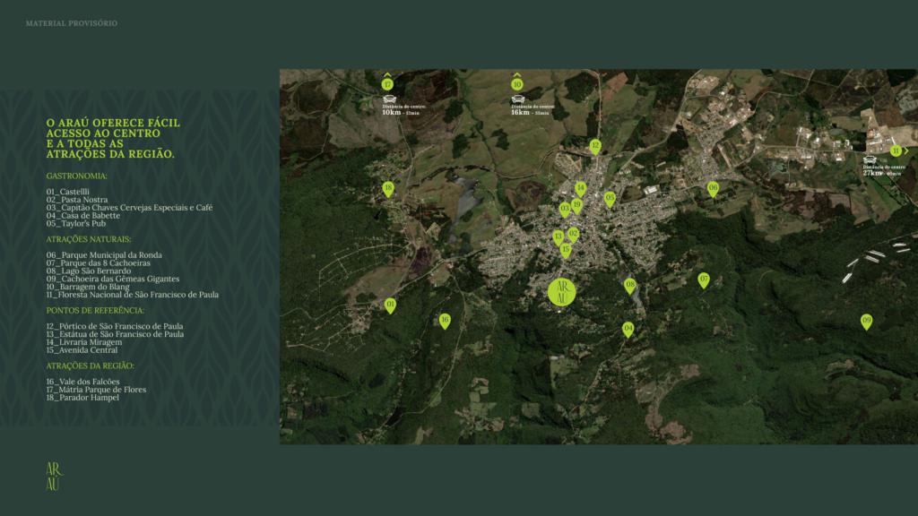 LANÇAMENTO: Primeiro Condomínio Fechado dos Campos em cima da Serra o Araú. O Araú oferece fácil acesso ao Centro e a todas as atrações da Reagião. Um Condomínio Fechado que oferece a mais completa infraestrutura de segurança e lazer, em uma localização privilegiada, muito próximo ao Centro de São Francisco de Paula.