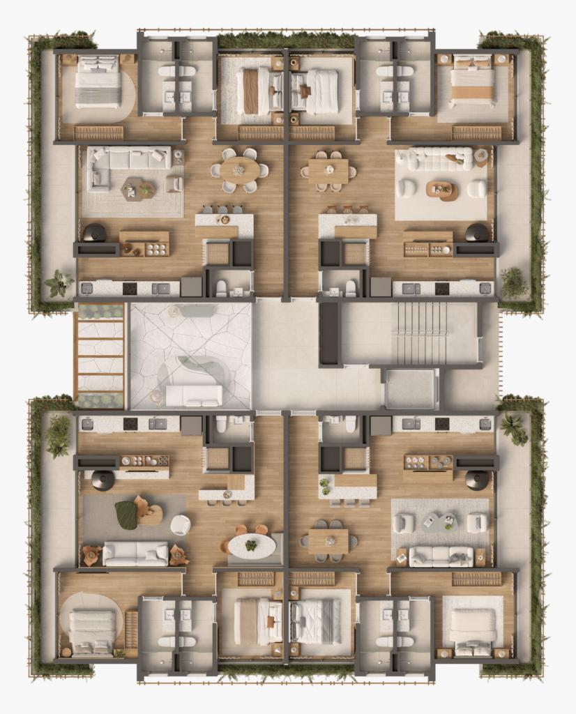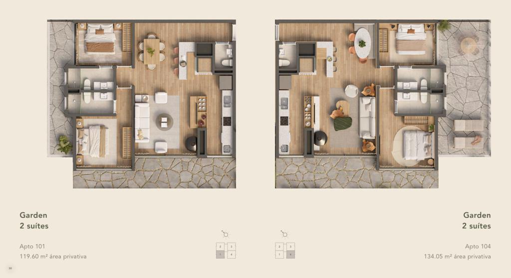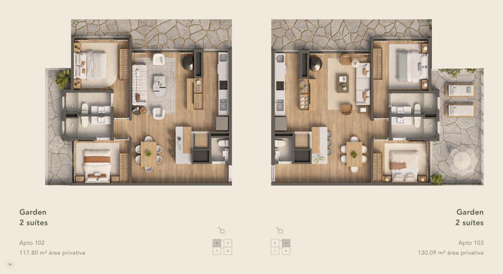 Características: 02 Suítes, 03 Suítes, Área de Serviço, Cozinha integrada com churrasqueira, Espera para água quente, Espera para automação residencial, Espera para lareira, Espera para split, Fechadura digital, Garden, Lavabo, Piso aquecido, Sacada, Sala de Estar, Sala de Jantar