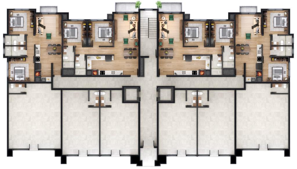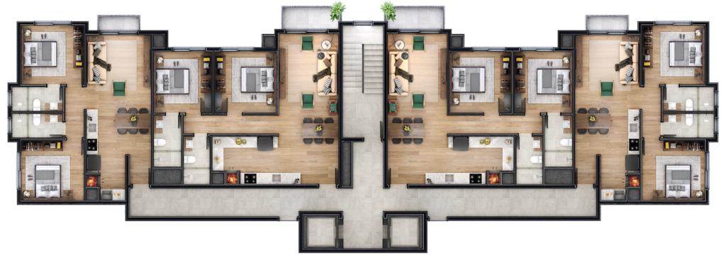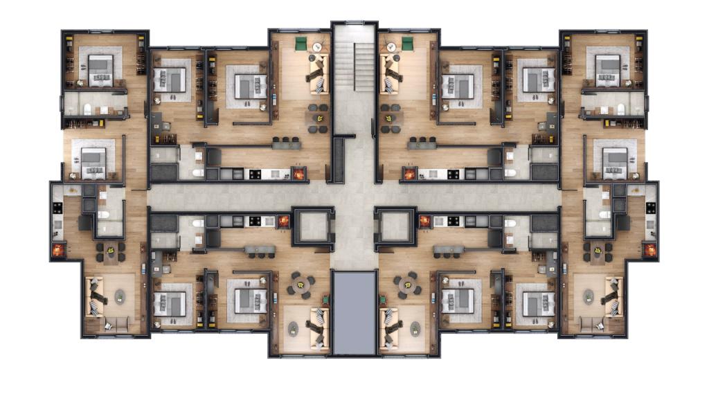 SOHO RESIDENCIAL: Apartamento de 02 dormitórios (01 suíte), cozinha integrada com churrasqueira, esperas para split, calefação e lareira. Próximo ao Centro de Gramado. um empreendimento inspirado no estilo