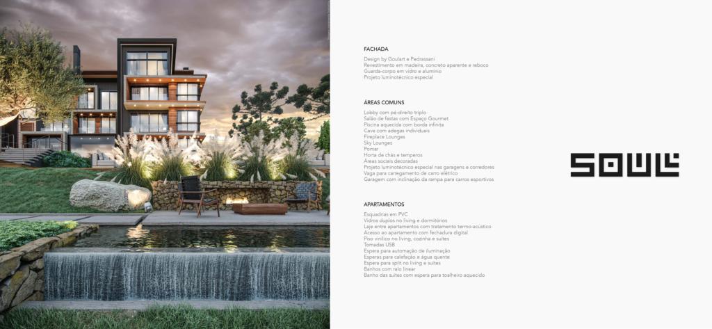 Infraestrutura: Adega, Elevador, Espaço Fire Fit (Espaço para fogueira ao ar livre), Espaço gourmet mobiliado, Gás Central, Hall de entrada, Lounge Garden, Medidores individuais de água, luz e gás, Pátio | Jardim, Piscina Aquecida, Porteiro Eletrônico, Salão de festas
